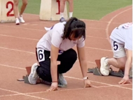 在女子甲组100米决赛中,胡书旗取得了第四名的好成绩